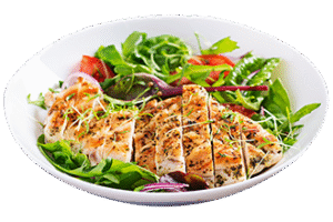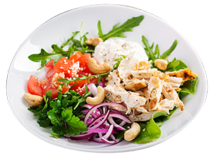Stir-fried rice with chicken, egg, vegetables & soy seasoning
